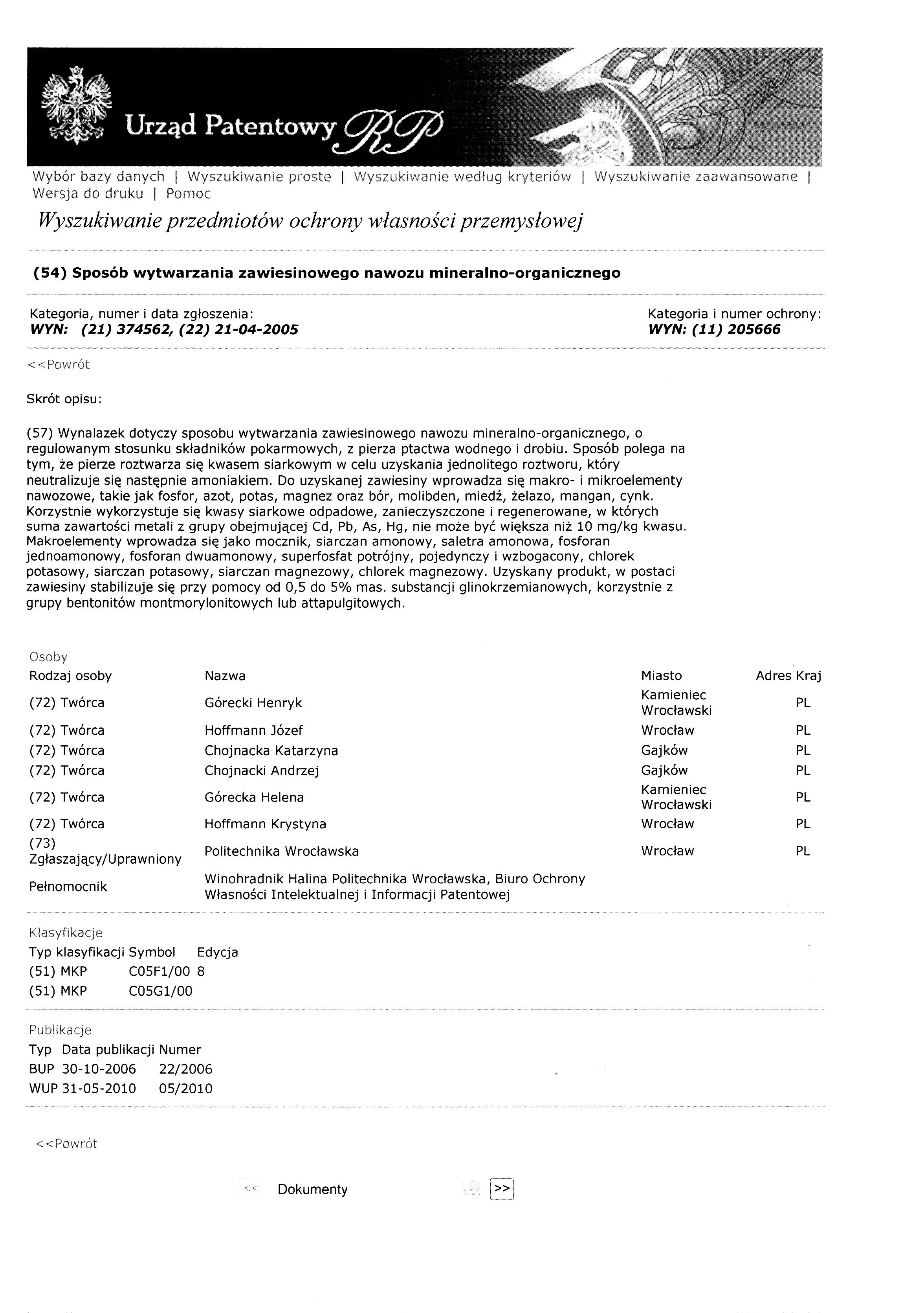 H. Górecki, H. Górecka, K. Chojnacka, Z. Dobrzański, M. Artmańska, M. Barańska, S. Biegańska, "Metoda utylizacji odpadów z przemysłu drobiarskiego na nawozy wieloskładnikowe" Przemysł Chemiczny 89/4, 360-365 (2010)